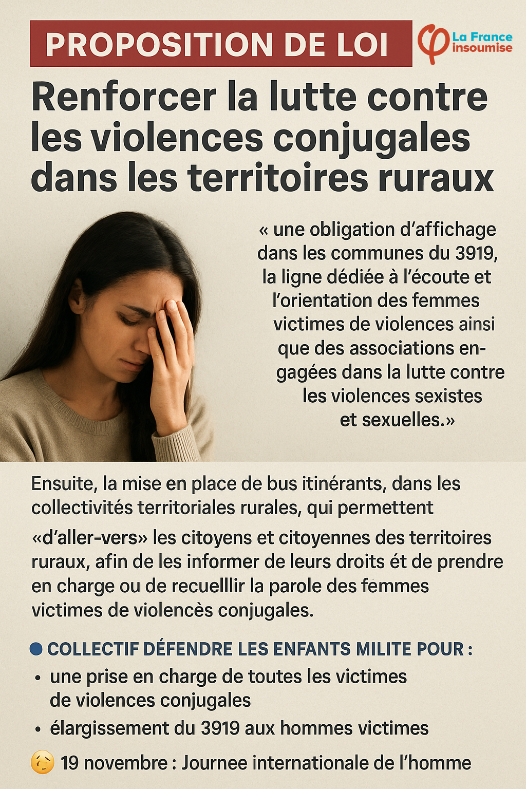 📣 Une nouvelle proposition de loi LFI pour renforcer la lutte contre les violences conjugales dans nos territoires ruraux !